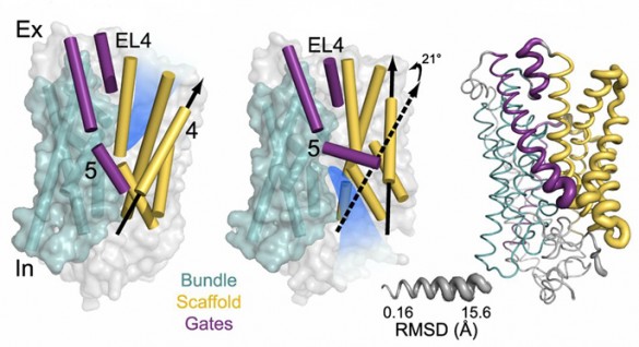 Now, Hassane Mchaourab, Ph.D., and colleagues have used spectroscopic tools to make dynamic measurements in LeuT, in order to elucidate sodium- and leucine-dependent conformational changes in the transporter. The results identify the structural motifs that underlie the shift of LeuT between its various states – outward-facing, inward-facing and occluded. The conformational changes differ from the existing models based on crystal structures of LeuT.