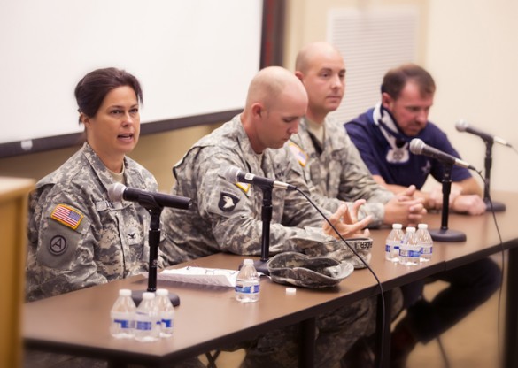 U.S. Air Force Maj. Gen. (retired) Kimberly Siniscalchi addressed a packed audience at the Vanderbilt University School of Nursing this week, in honor of Veterans Day. Siniscalchi drew on her 33 years of military service and perspective as an advanced practice nurse to discuss advancements in medical care in the military and the strong role nursing continues to play.