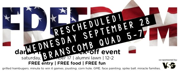Dance Marathon‘s Kickoff Event—originally scheduled for Sept. 17 but postponed due to inclement weather—has been rescheduled for Wednesday, Sept. 28, from 5 to 7 p.m. at Branscomb Quad.