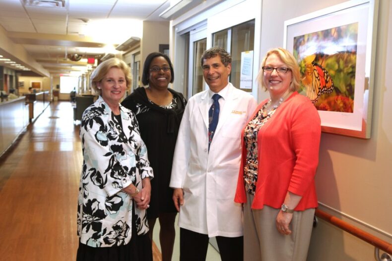 Matthew Weinger, M.D., with members of Vanderbilt’s Patient-Family Advisory Council, from left, Diane Buckberg, Jessica Pasley and Susan Morley. (photo by Anne Rayner)