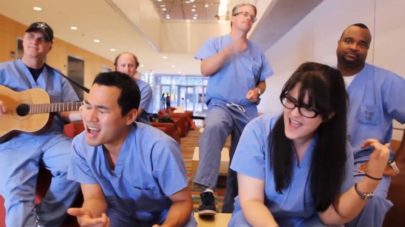 “Normally, we borrow the tune from an existing song, but this year we have written an original song; please keep in mind we are doctors and nurses, not songwriters,” Glazer told the crowd gathered in 208 Light Hall.