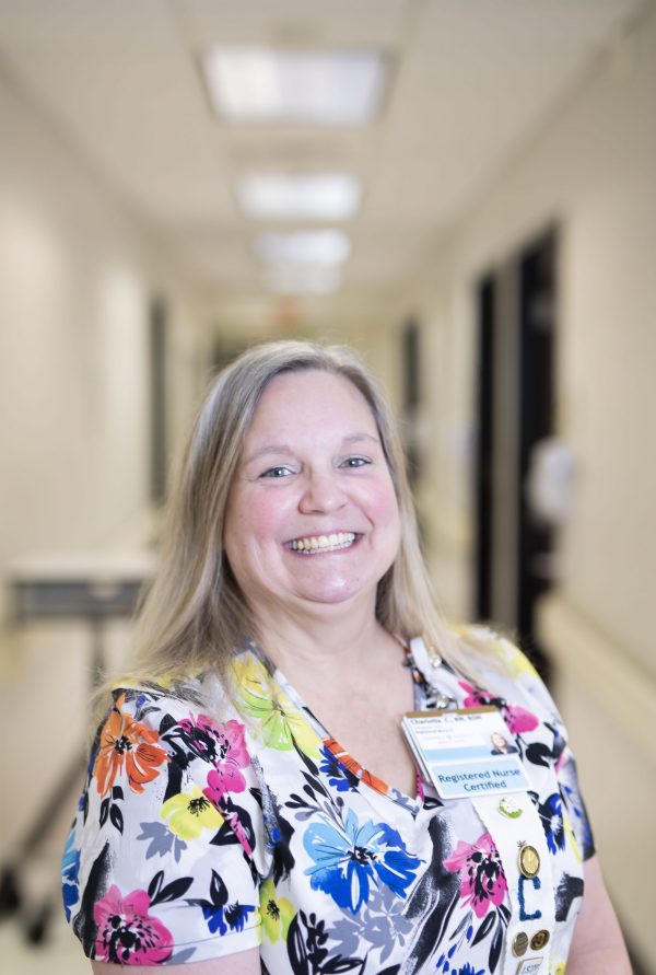Janet Murrian. From the nomination: “I was on the infusion floor for about four hours for chemotherapy. Janet Murrian was my nurse and provided excellent care. I wear a chemotherapy infusion pack home and my husband disconnects me using a disconnect kit provided by the clinic. The surgical gloves in the kit are always too small and split on him. We have started asking for some large size gloves. We mentioned this to Janet, but she forgot and we also forgot. Mark was just going to use the small size gloves – no problem. We went out to check our mailbox today, and Janet drove to our home in Mount Juliet and placed a note with the size large gloves in our mailbox.” Photo by Susan Urmy