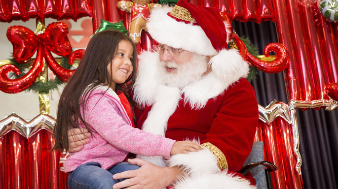 Santa talks with Emma Hudson during his recent visit to see patients and families at the Monroe Carell Jr. Children’s Hospital at Vanderbilt.