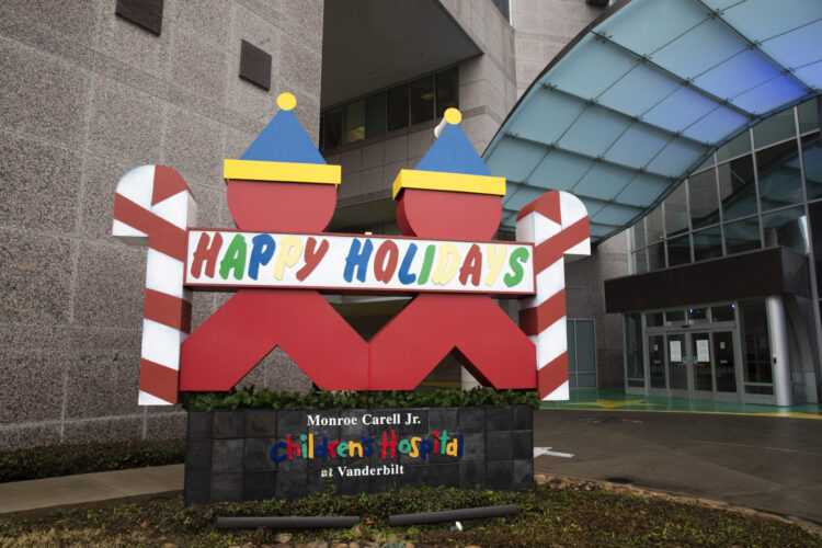 A festive greeting outside Monroe Carell Jr. Children’s Hospital at Vanderbilt. Photo by Susan Urmy
