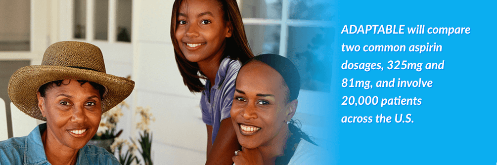 The purpose of ADAPTABLE is to find the best dose of aspirin, 81 mg or 325 mg, for people with known or existing heart disease to prevent death or another heart attack or stroke.