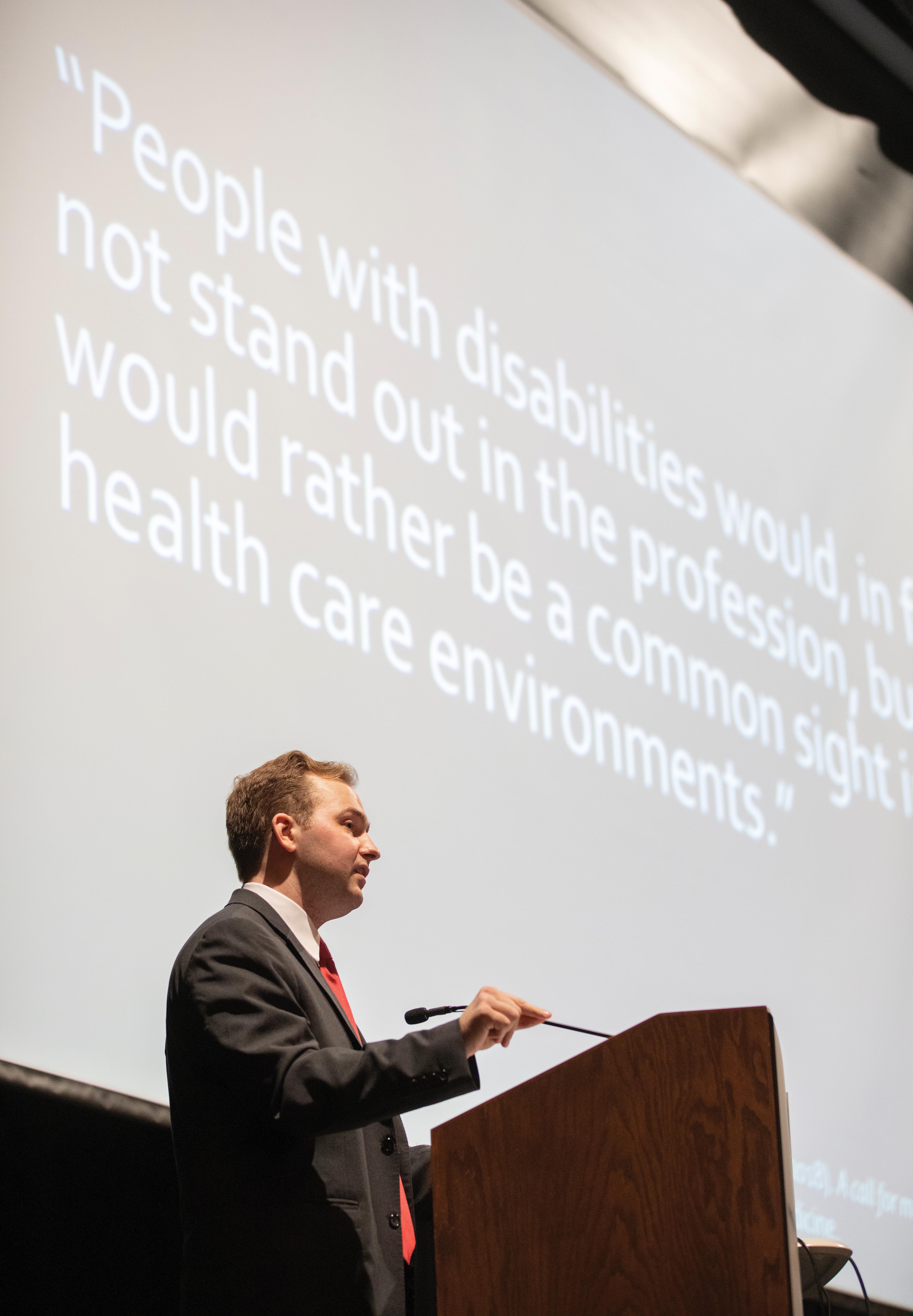 “There’s a perception that doctors have to be absolutely perfect mentally and physically because they’re taking care of people [with lives in their hands]. There’s a sort of stigma against revealing whether or not you have a disability because some people might think of disability as a flaw or imperfection – but it’s not. I want to be able to challenge the notion that just because you have a disability doesn’t mean you are any less of a physician or a person. In fact, I think it makes you a better provider because you have that experience to connect with your patients or co-workers and team as a whole.”