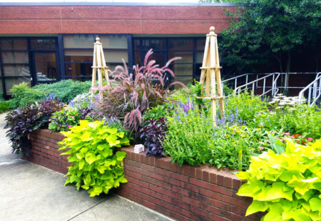 Plants are cared for in collaboration with Vanderbilt’s Plant Operations services. Patients are welcome to clip plants from the bed to brighten their rooms, and volunteers have even found anonymously donated plants in their place.