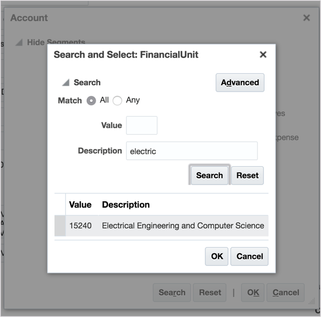 Example: See below for reference of an updated COA string that will be routed to the Electrical Engineering and Computer Science Department FUM.