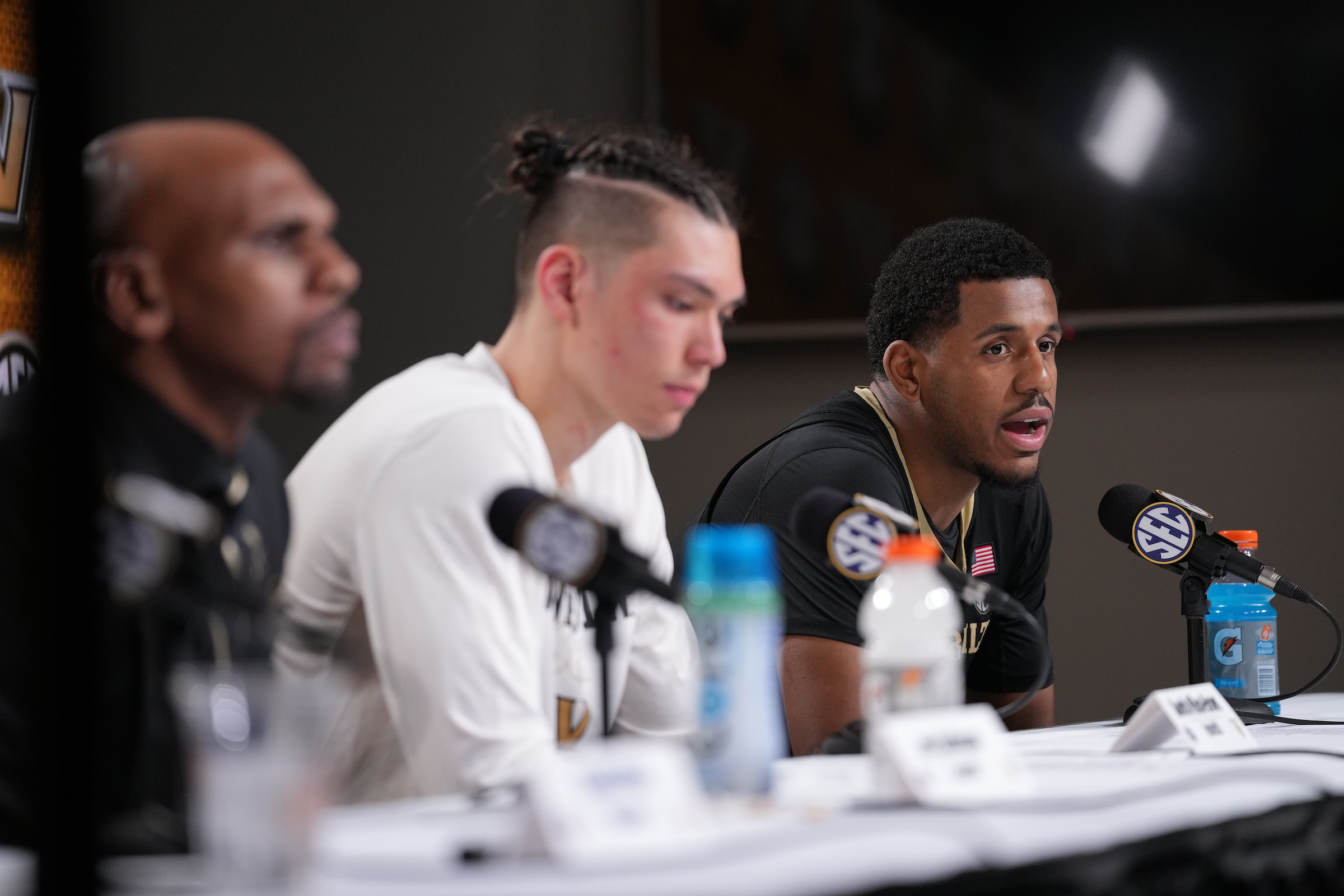 The Commodores took control scoring the final 12 points of the first half with Colin Smith giving them the lead for good at 36-34 with 32.2 seconds left in the first half on a pair of free throws after a Flagrant 1 on Tschiebwe. Vandy led 39-34 at halftime.