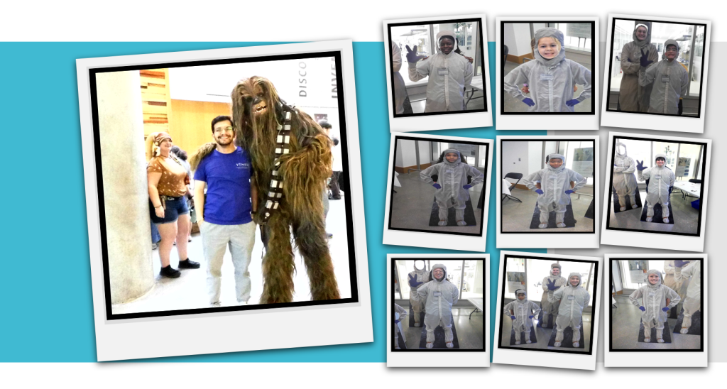 Guests stepped into the role of a cleanroom researcher, learning why scientists wear specialized suits in controlled environments and capturing a keepsake photo with a VINSE cleanroom cut-out backdrop.