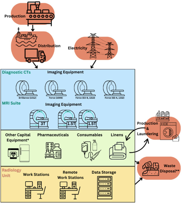 These findings highlight the importance of energy consumption in imaging services and suggest that renewable energy adoption, efficient scanner use, reusable supplies, and circular business practices—such as extending equipment life—can meaningfully reduce the environmental impact of medical imaging.