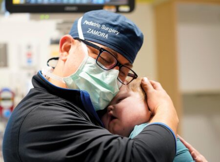 “We are all home together, and he loves being here,” said Lacey Ray. “He has come out of his shell. He is smiling a lot, laughing and even rolls to his belly,” she said, giving credit to Zamora and his team. “I’m glad there are teaching hospitals like this. It’s why they can try new things that will hopefully help others in the future who will need this kind of procedure.